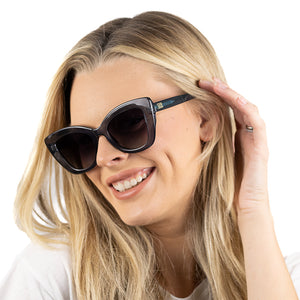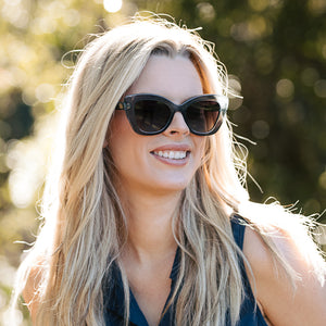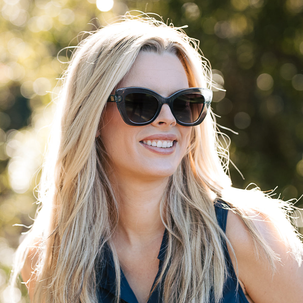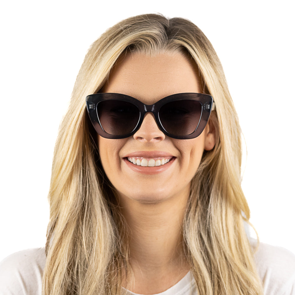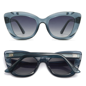 With striking lines and bold proportions, our 100% plant based Eden sunglasses are a chic wardrobe staple. Eden Indigo is a modern cat eye frame created from sustainable Castor Seed Oil and finished in a deep translucent grey blue and is suitable for all face shapes.