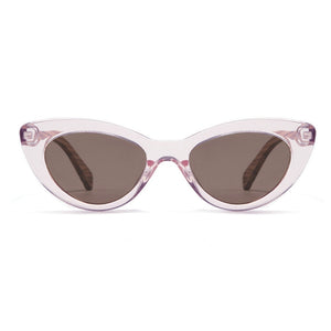 This is an iconic slim cat eye sunglass that never goes out of style. Favoured by style icons for generations, our Savannah is finished in a clear blush pink with walnut wood arms and fitted with gradient brown lenses.
