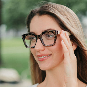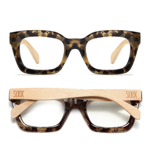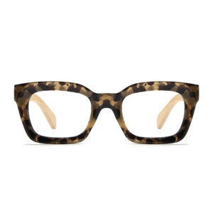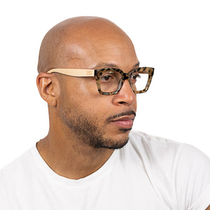 These popular 90s inspired readers are a mid-sized style that will suit most face shapes and sizes. Our Zahra magnifying readers are finished in a gorgeous opal tort and fitted with white maple wood arms.