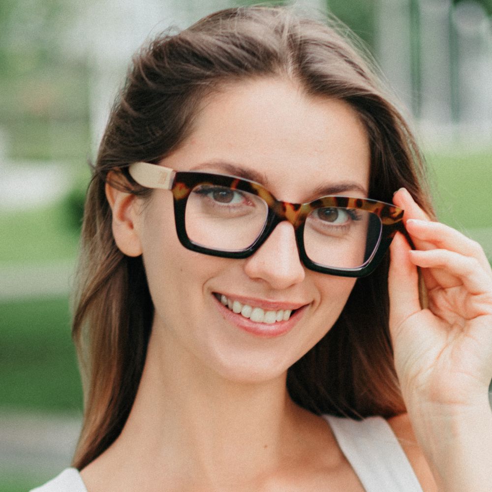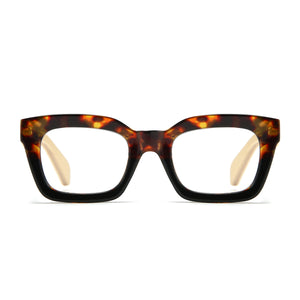 These popular 90s inspired readers are a mid-sized style that will suit most face shapes and sizes. Our Zahra magnifying readers are finished in a gorgeous toffee tort and fitted with white maple wood arms.