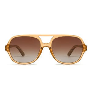 With its laid back attitude, Billy is the must-have aviator for summer. This 70s inspired silhouette has flattering unisex proportions and suits most face shapes and sizes. Finished in warm clear brown with walnut wood arms it exudes a carefree spirit.