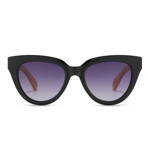 Timeless and chic, these eco-friendly cat-eye sunglasses in a classic black finish are the epitome of understated elegance. Paired with sustainable walnut wood arms, they offer a sophisticated, natural touch that complements any style. Perfect for those who want a blend of glamour, versatility, and eco-conscious design.
